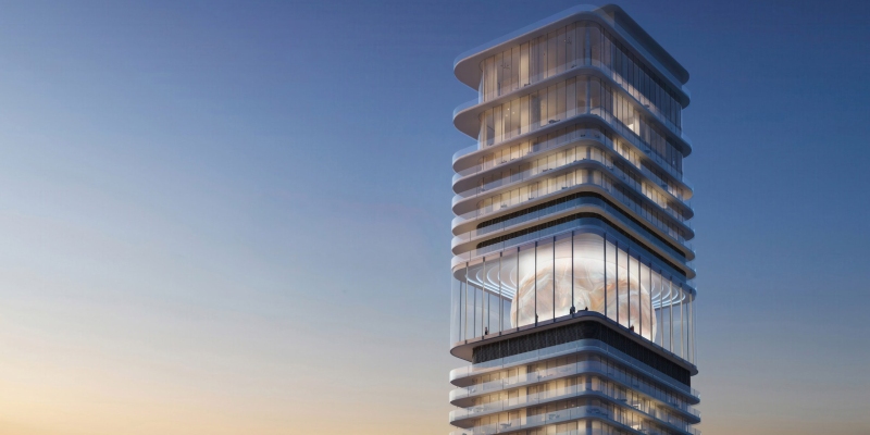 Lejos de seguir la carrera por la altura o los gestos escultóricos extremos que caracterizan buena parte del skyline de Dubái, Inaura propone un enfoque arquitectónico más sutil pero distintivo. Entre los pisos superiores, por ejemplo, el diseño plantea la inserción de un ovoide que actúa como punto focal visual.